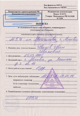 Медицинская справка 027/у (выписной эпикриз)
